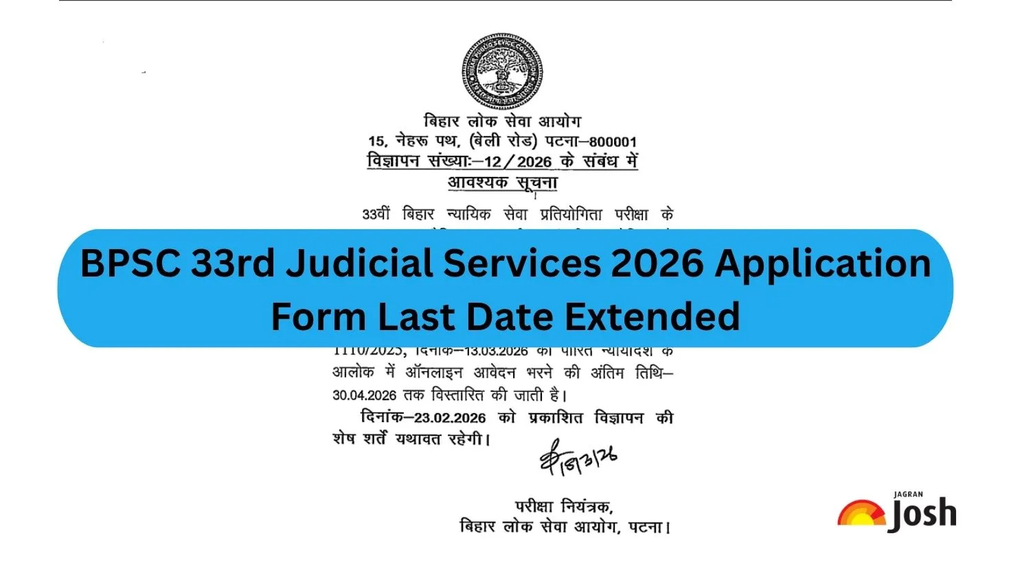 The Bihar Public Service Commission (BPSC) has extended the deadline to apply for the BPSC 33rd Judicial Services examination application process. The commission has released the notification in this context which tells that the last date to apply has been extended till 30 April 2026.