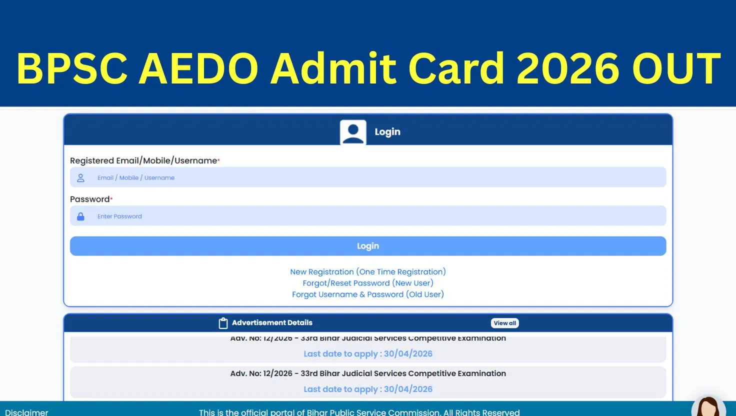 BPSC AEDO Admit Card 2026 OUT: The Bihar Public Service Commission (BPSC) has released the BPSC AEDO (Assistant Education Development Officer) admit card 2026 for the AEDO Competitive Examination 2025 on its official website, bpsc.bihar.gov.in. Those who wish to appear for this recruitment examination can download their e-admit cards using their login credentials.