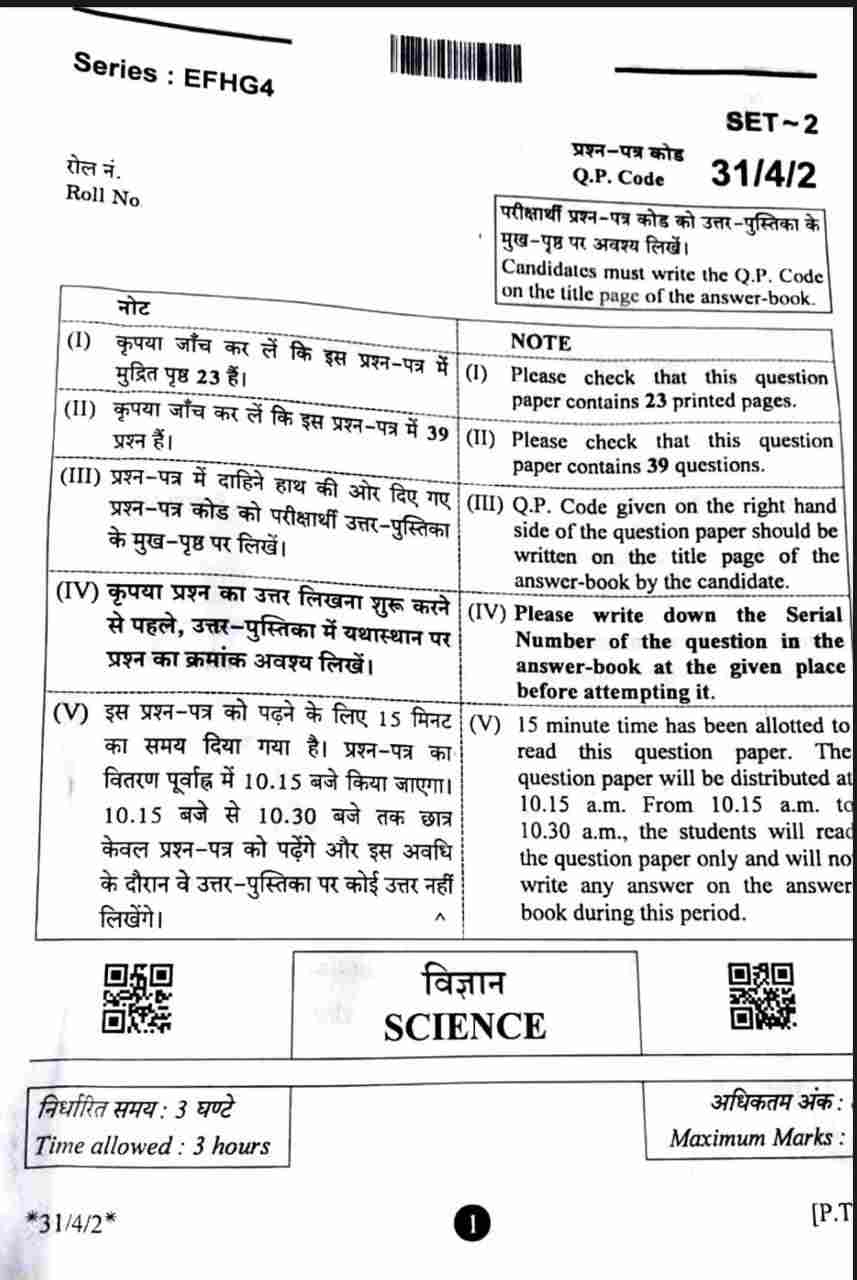 CBSE 10th Science Question Paper 2025 PDF: The Central Board of Secondary Education (CBSE) exams started on February 15, 2025 (Saturday). Here is the free PDF of the question paper of the CBSE Board Class 10 Science exam which was conducted on February 20, 2025. Scroll down and check details related to the paper and download its FREE PDF.