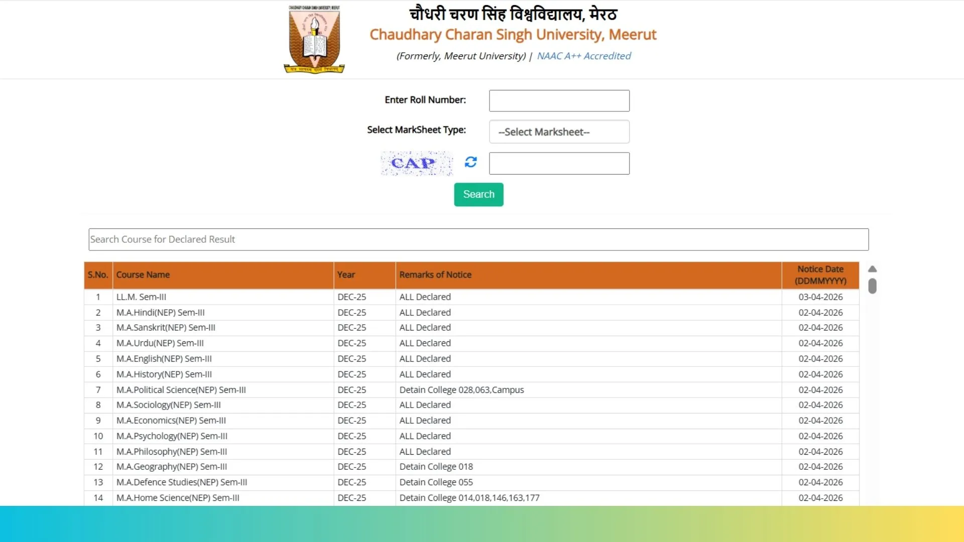 | CCS University Result 2026 Download Link |