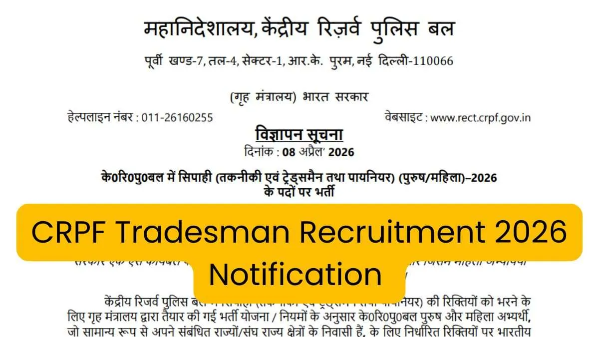 CRPF Tradesman Recruitment 2026: नोटिफिकेशन जारी