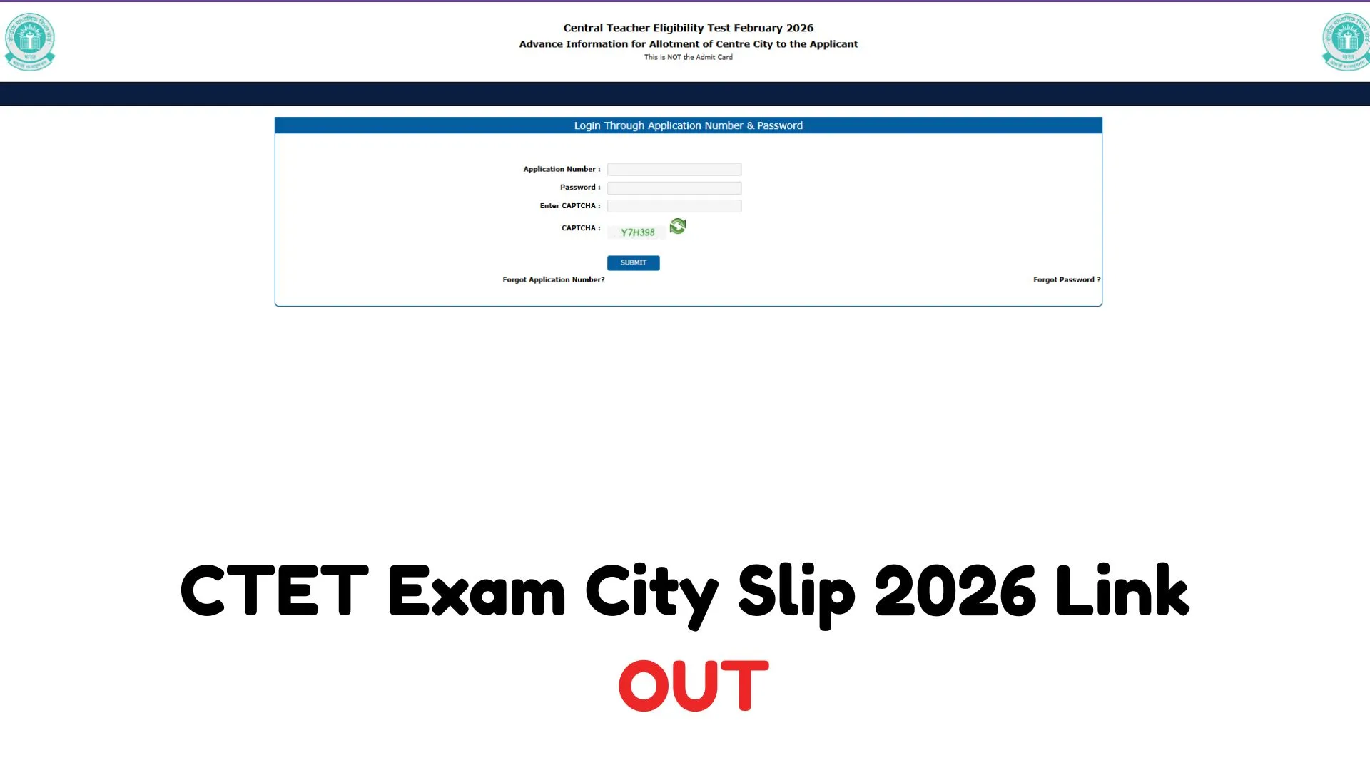 आधिकारिक नोटिस के अनुसार, CTET परीक्षा का आयोजन 08 फरवरी 2026 को किया जाएगा। एग्जाम सिटी स्लिप डाउनलोड करने के लिए उम्मीदवारों को वेबसाइट पर जाकर आवेदन संख्या और जन्मतिथि/पासवर्ड के माध्यम से लॉगिन करना होगा।
