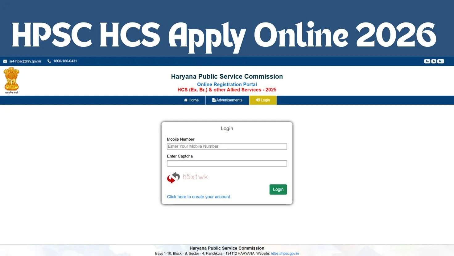 STEP 2: On the homepage, click on the Recruitment section and look for the Advt No. 22 of 2026 - HCS (Ex. Br.) & Other Allied Services. Click on the Apply Online link provided. Candidates are required to complete the registration process first before applying.