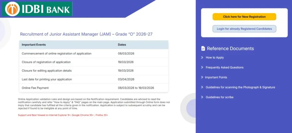 IDBI JAM Recruitment 2026 के लिए आवेदन करने का ऑनलाइन लिंक