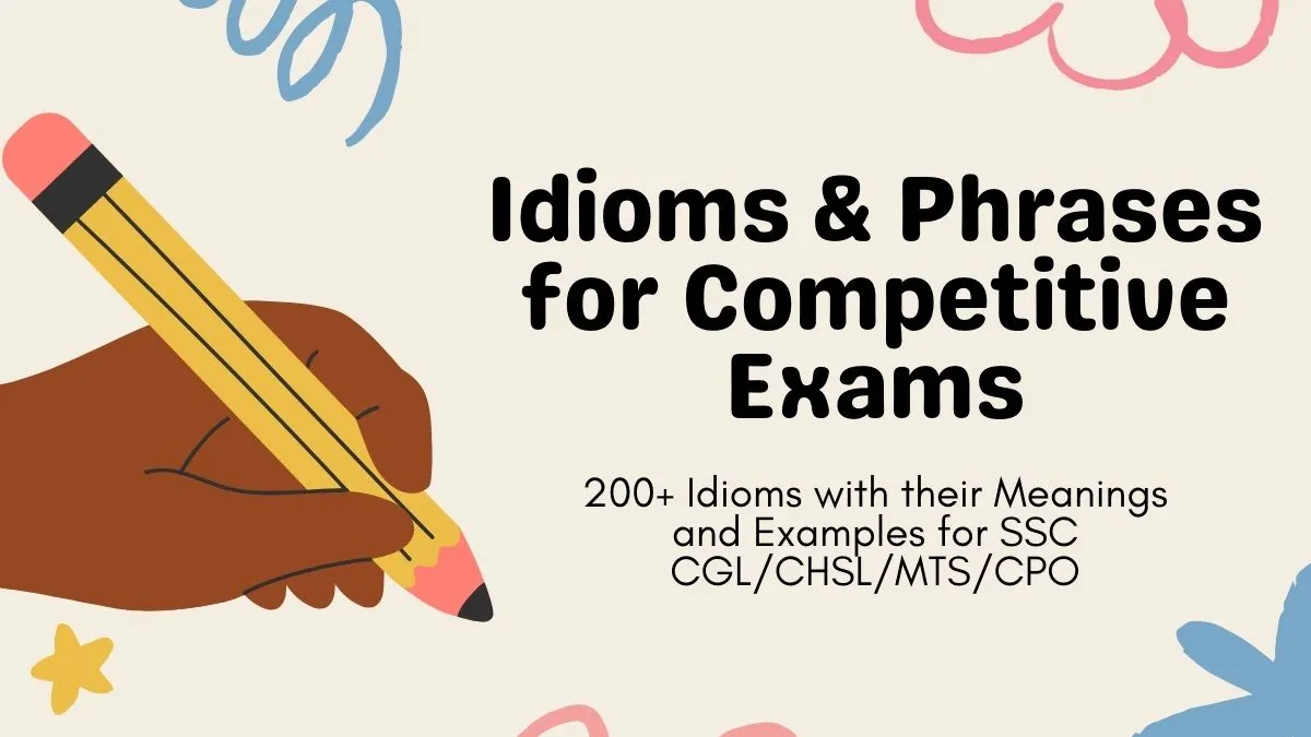 Idioms and phrases are a crucial component of the English language and play a significant role in competitive exams. They enhance vocabulary by allowing one to express ideas in a creative manner. Idioms and phrase questions are very important for SSC exams such as SSC CGL, MTS, CHSL, and JE. Around 4 to 5 questions are asked on this topic and can have a huge impact on your overall score. So, to aid you in your preparation, here we have added the list of Idioms and Phrases with their meanings that are intrinsic for competitive exam preparation.