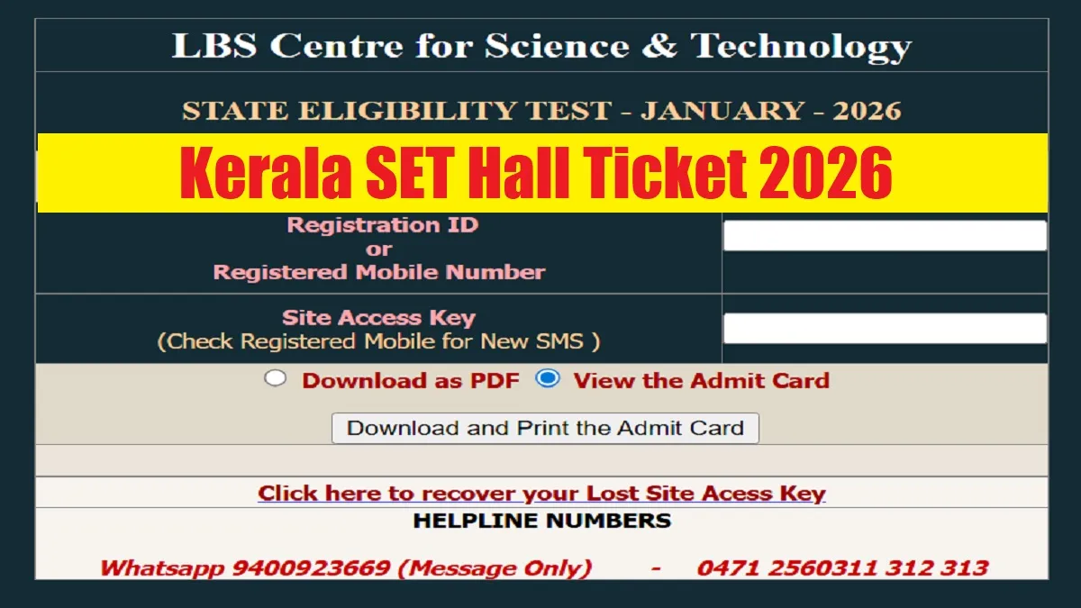 Kerala SET Hall Ticket 2026: The LBS Centre for Science & Technology has released the Kerala SET Admit Card 2026 download link for the State Eligibility Test 2026. Kerala State Eligibility Test (SET) is a gateway for all those candidates wishing for appointment as Higher Secondary School Teachers in the State as per the Special Rules across the state. The State Eligibility Test 2026 is scheduled to be held on February 22, 2026 across the state. The test is scheduled for two Papers including Paper I and Paper II. Paper I is common for all candidates consists of two parts whereas Paper II is a test based on the subject of specialisation of the candidate at the Post Graduate (PG) Level.