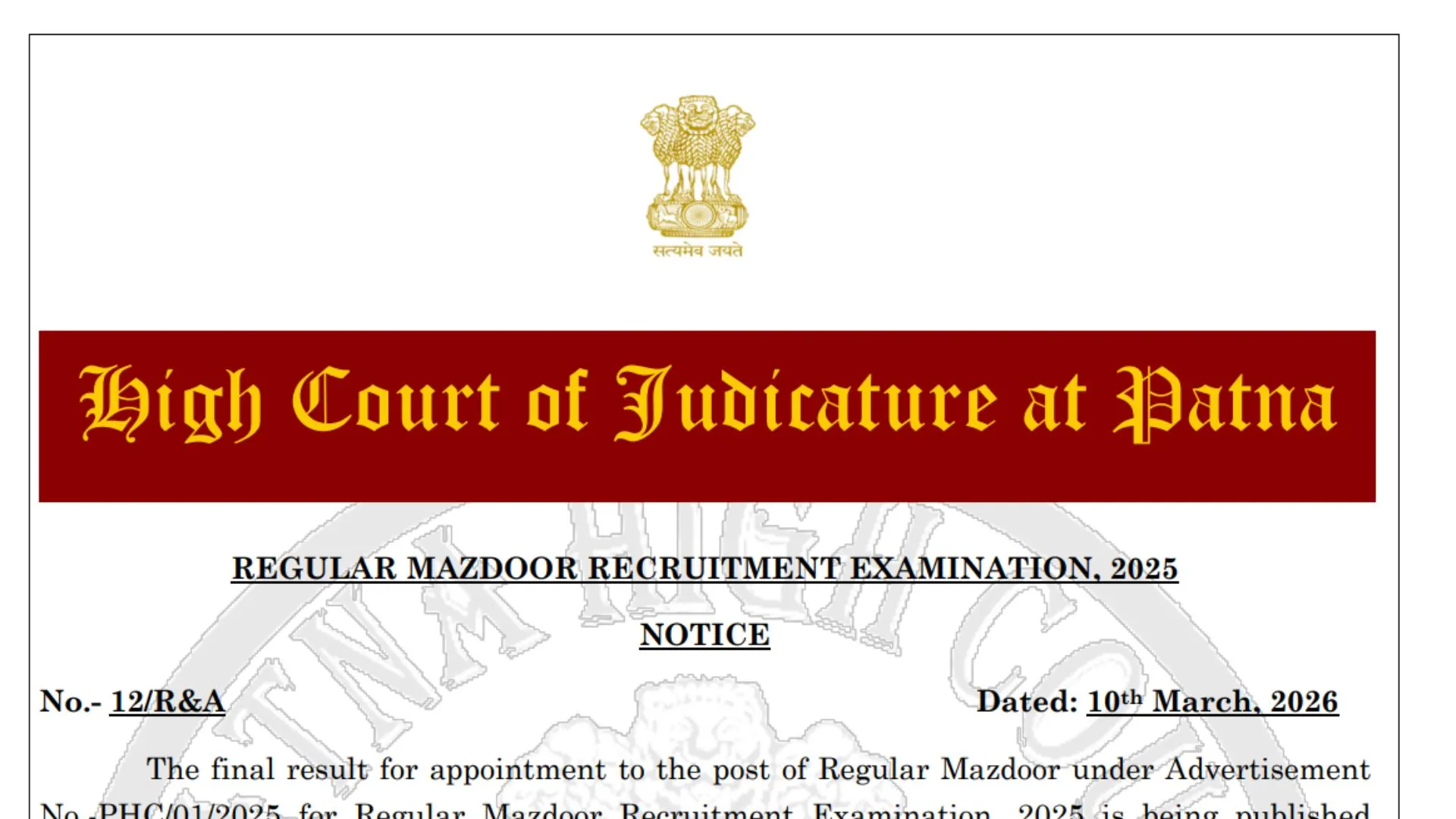 | Patna High Court Mazdoor Final Result 2026 PDF Link |