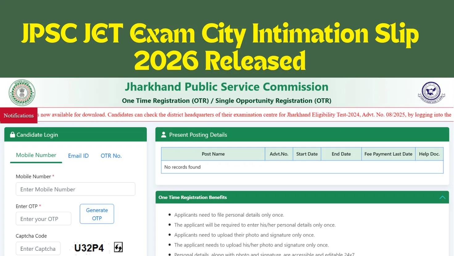 Jharkhand JET City Slip 2026: The Jharkhand Public Service Commission (JPSC) has released the Jharkhand JET exam city slip 2026 on its portal, jpsotr.com on 15 April 2026. Previously, a short notice was released by the commission which outlined the dates for the exam city slip, admit card, and the JET exam date. As per the official notice, the exam city slip has to be released on 15 April followed by the admit card on 22 April. The Jharkhand JET is scheduled to be conducted on 26 April 2026.