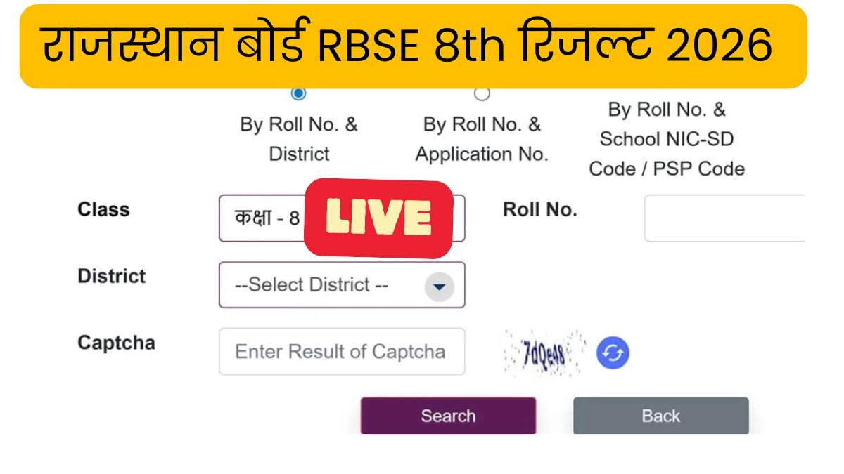 RBSE 8th Result 2026, Rajasthan Class 8th Result 2026 at rajshaladarpan.nic.in: राजस्थान माध्यमिक शिक्षा बोर्ड (RBSE) की ओर से कक्षा 8वीं के परिणाम 2026 घोषित। 8वीं का परिणाम भी 10 वी बोर्ड के परीक्षा परिणामों के साथ ही दोपहर 1 बजे मंत्री महोदय अजमेर बोर्ड कार्यालय से किया गया जारी। परीक्षा में शामिल हुए छात्र अपना परिणाम rajshaladarpan.nic.in पर देख सकते हैं। राजस्थान बोर्ड (RBSE) 8वीं कक्षा के परिणाम 2026 राजस्थान शालादर्पण की आधिकारिक वेबसाइट पर उपलब्ध। परिणाम देखने के लिए छात्र आधिकारिक वेबसाइट पर जाकर अपने जिले और कैप्चा का उपयोग करके लॉगिन करें।
