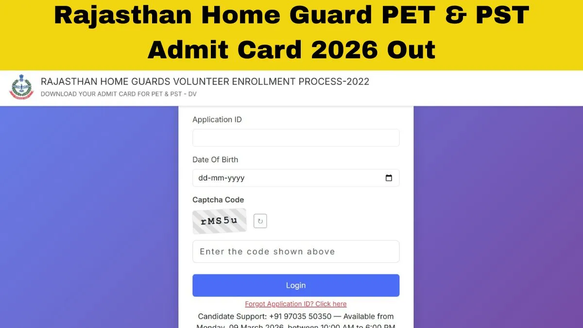 The Rajasthan Home Guard Department has released the Rajasthan Home Guard PET PST Admit Card 2026 for candidates who will appear in the Physical Efficiency Test (PET) and Physical Standards Test (PST). The hall ticket is now available for download on the official website home.rajasthan.gov.in. Candidates who successfully registered for the Home Guard recruitment drive can access their admit cards online by logging in with their registration number and password. The Rajasthan Home Guard Physical exam will commence from 16 March to fill 3842 vacancies.
