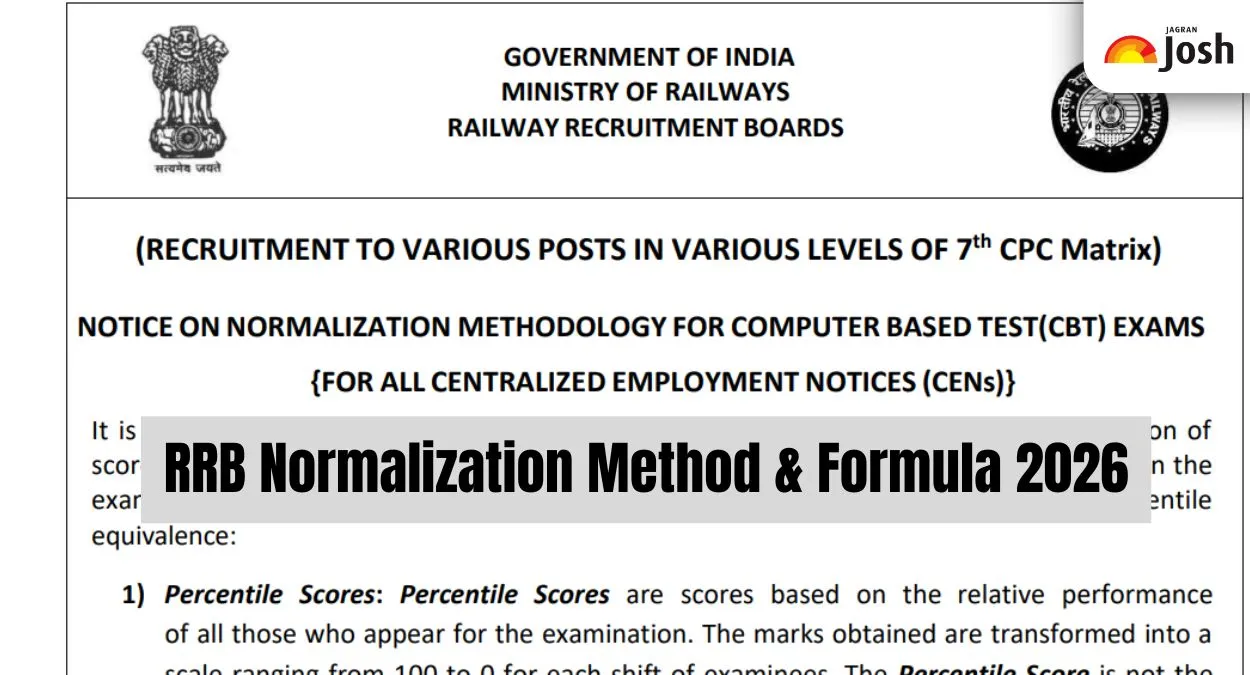 The Railway Recruitment Board (RRB) has officially announced the RRB Normalisation Method & Formula 2026. According to the notification issued on 9 February 2026, RRB will use the Percentile Score method to normalise marks of candidates who appear for the Computer-Based Test (CBT) in multiple shifts.