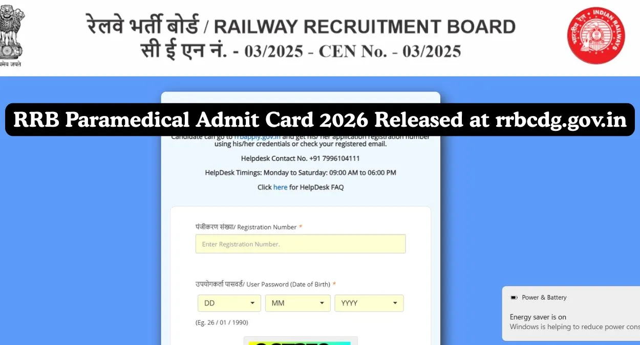 The Railway Recruitment Board (RRB) has released the RRB Paramedical Admit Card 2026 on 8 March 2026 for candidates appearing in the exam scheduled on 11 March 2026. Candidates whose applications have been accepted can download their CEN 03/2025 admit cards from the official website rrbcdg.gov.in or the respective regional RRB portals.