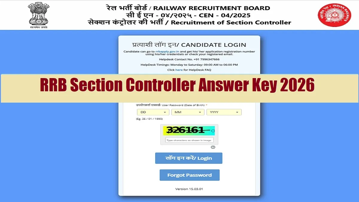 RRB Section Controller Answer Key 2026: The Railway Recruitment Board (RRB) has successfully conducted the written exam for the Section Controller posts on 11th and 12th February 2026. Candidates who appeared in the written exam are waiting eagerly for the RRB Section Controller Answer Key 2026 which is likely to be released soon. The RRB Section Controller Answer Key 2026 is the crucial document which provides the candidates to  verify their responses, estimate their scores, and understand their chances of qualifying for the exam. A total of 368 Section Controller vacancies are to be filled through the recruitment drive across the country.