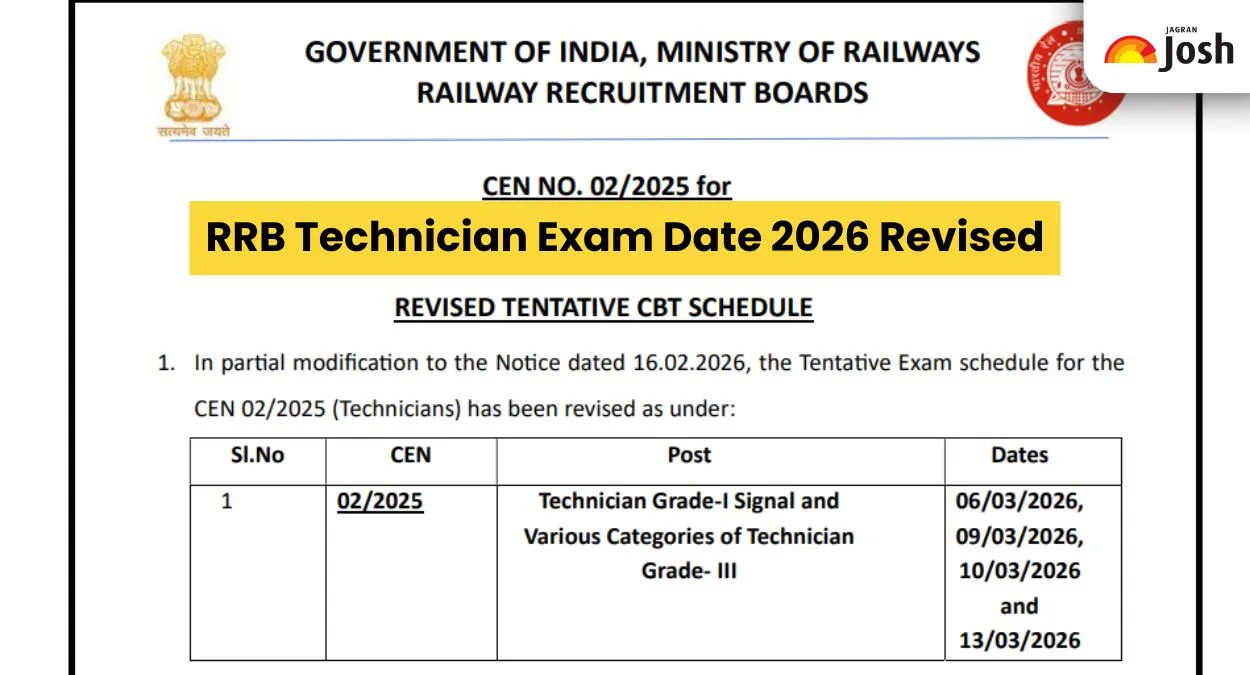The RRB Technician Revised Exam Date 2026 has been officially announced. The exam will be conducted on 6 March, 9 March, 10 March, and 14 March 2026. Candidates who have applied for the Technician post should carefully check all the important details related to the examination.