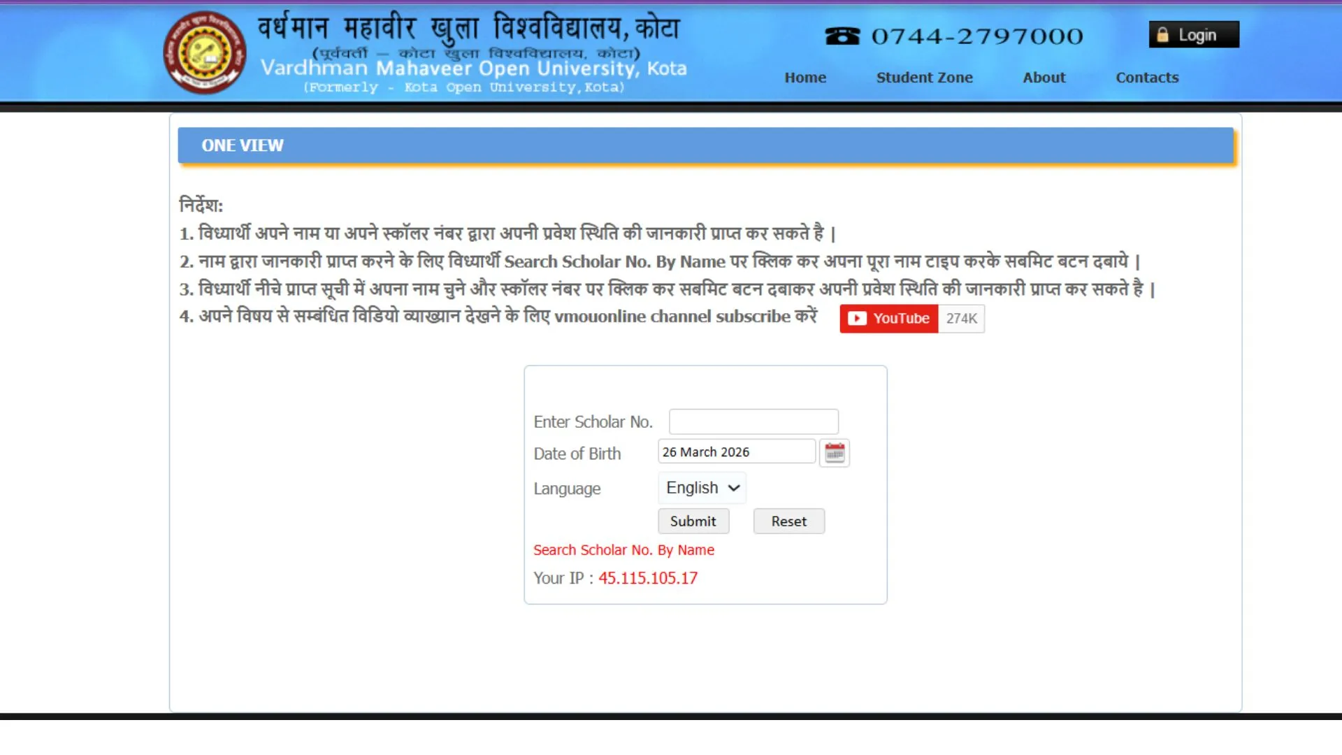 अभ्यर्थी सबसे पहले आधिकारिक वेबसाइट vmou.ac.in पर जाएं