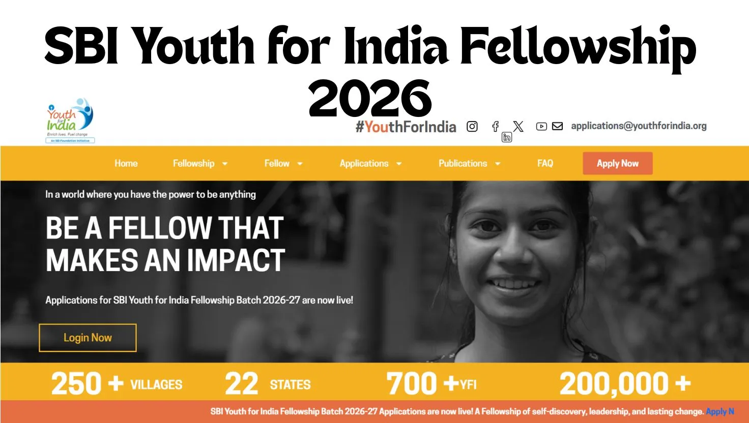 SBI Youth for India Fellowship Apply Link 2026