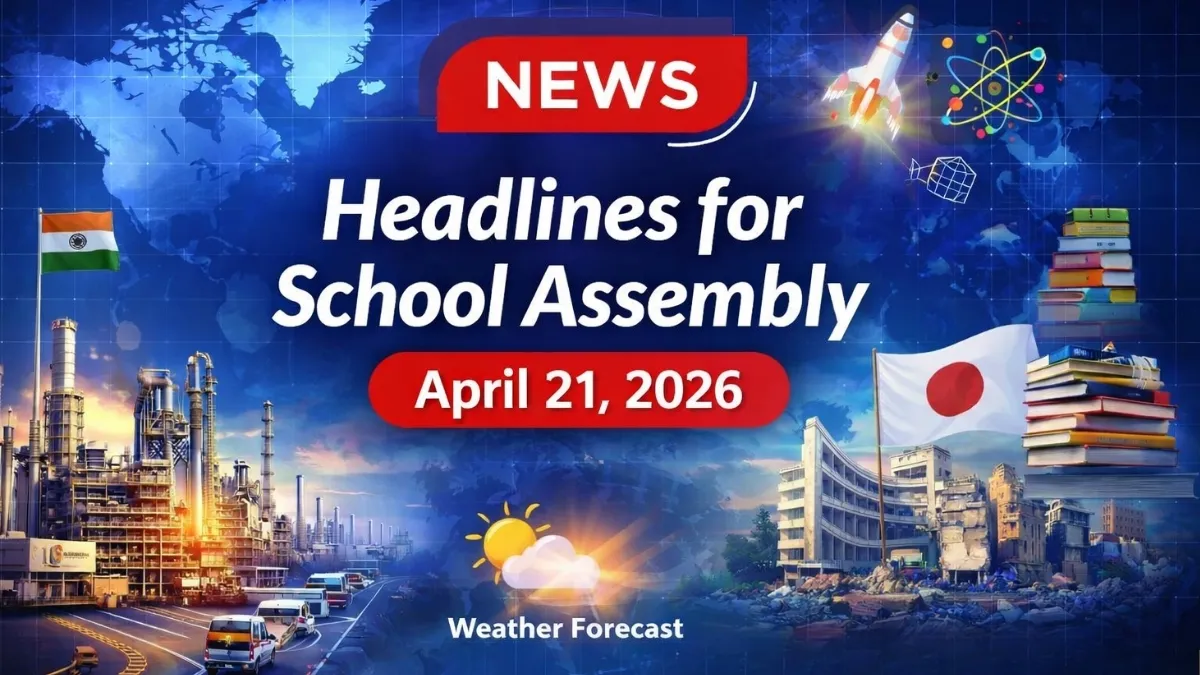 School Assembly Headlines (April 21):This article has all the main news stories for school assemblies on April 20, 2026. It includes news from India, International News, Sports updates, Economy and Education. You will also find the latest news in science and technology. The article finishes with a motivating "Thought of the Day" quote for students to keep themselves motivated.