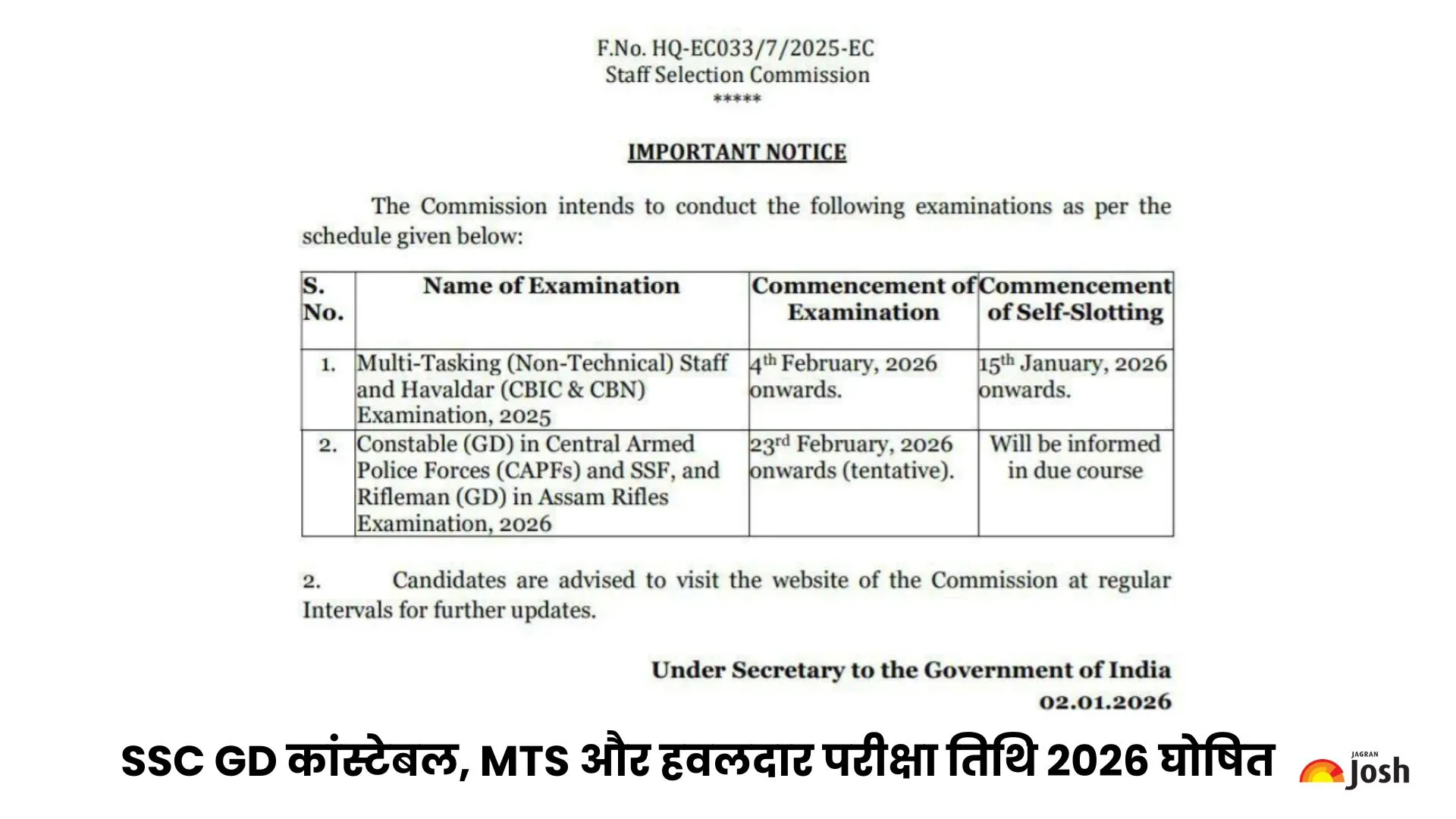 SSC GD Exam Date 2026 OUT: कांस्टेबल, MTS और हवलदार परीक्षा तिथि घोषित, यहां देखें शेड्यूल नोटिस PDF