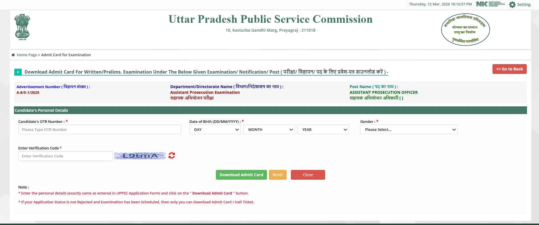 अब "सहायक अभियोजन अधिकारी परीक्षा 2026 के लिए एडमिट कार्ड डाउनलोड करें" शीर्षक वाले लिंक पर क्लिक करें।