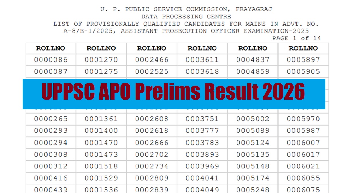 UP APO Prelims Result 2026 : The Uttar Pradesh Public Service Commission (UPPSC) has released the UP APO Prelims Result 2026 for the posts of Assistant Prosecution Officer (APO) on its official website. Candidates who have appeared in the written exam for the Assistant Prosecution Officer (APO) posts can download the result from the official website uppsc.up.nic.in. The result has been released in the pdf format for the posts of Assistant Prosecution Officer (APO) at- uppsc.up.nic.in.