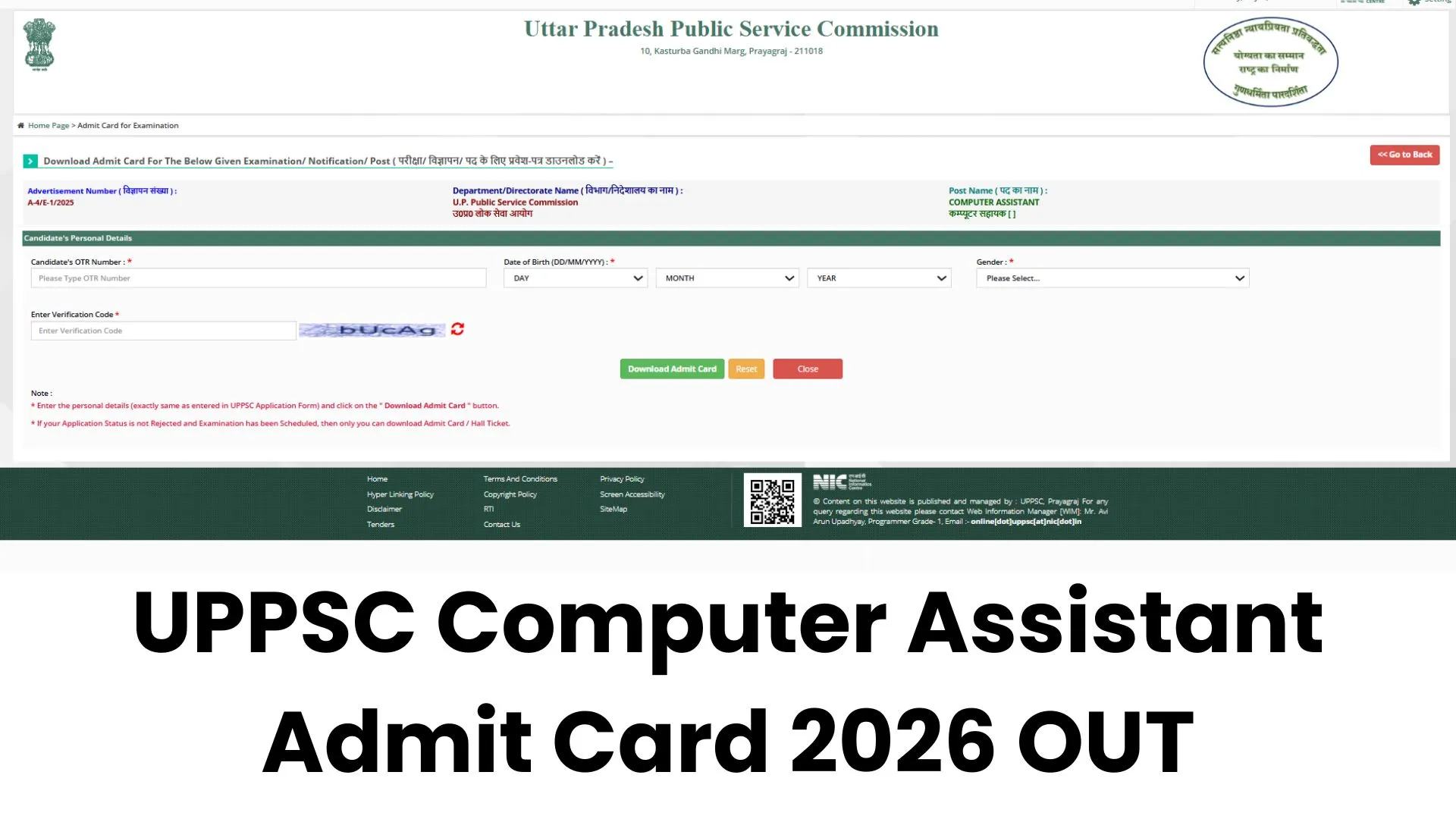 UPPSC Computer Assistant Admit Card 2026 Download Link
