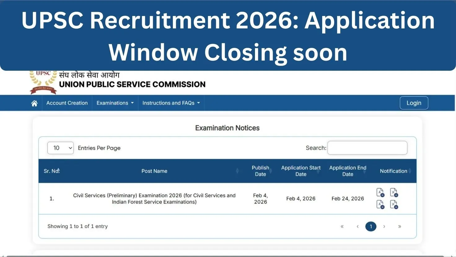 UPSC Recruitment 2026: The eligible graduates who fulfill all the eligibility criteria mentioned in the official UPSC CSE notification 2026 are invited to apply online for the UPSC CSE Preliminary examination. The application window remains open till 24 February (till 06:00 pm). The interested candidates can apply for 933 posts which are to recruit candidates for All India Services, Group A and B Services. The UPSC conducts the CSE once in a year and consists of a three-stage selection process: Preliminary exam, Mains exam, and Interview/Personality test.