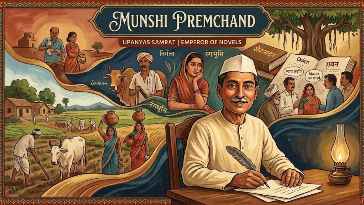 Munshi Premchand, often called the “Upanyas Samrat” (Emperor of Novels), revolutionised Hindi and Urdu literature. He shifted storytelling from fantasy and romance to realism, highlighting rural life, poverty, women’s issues, and social justice in early 20th-century India.