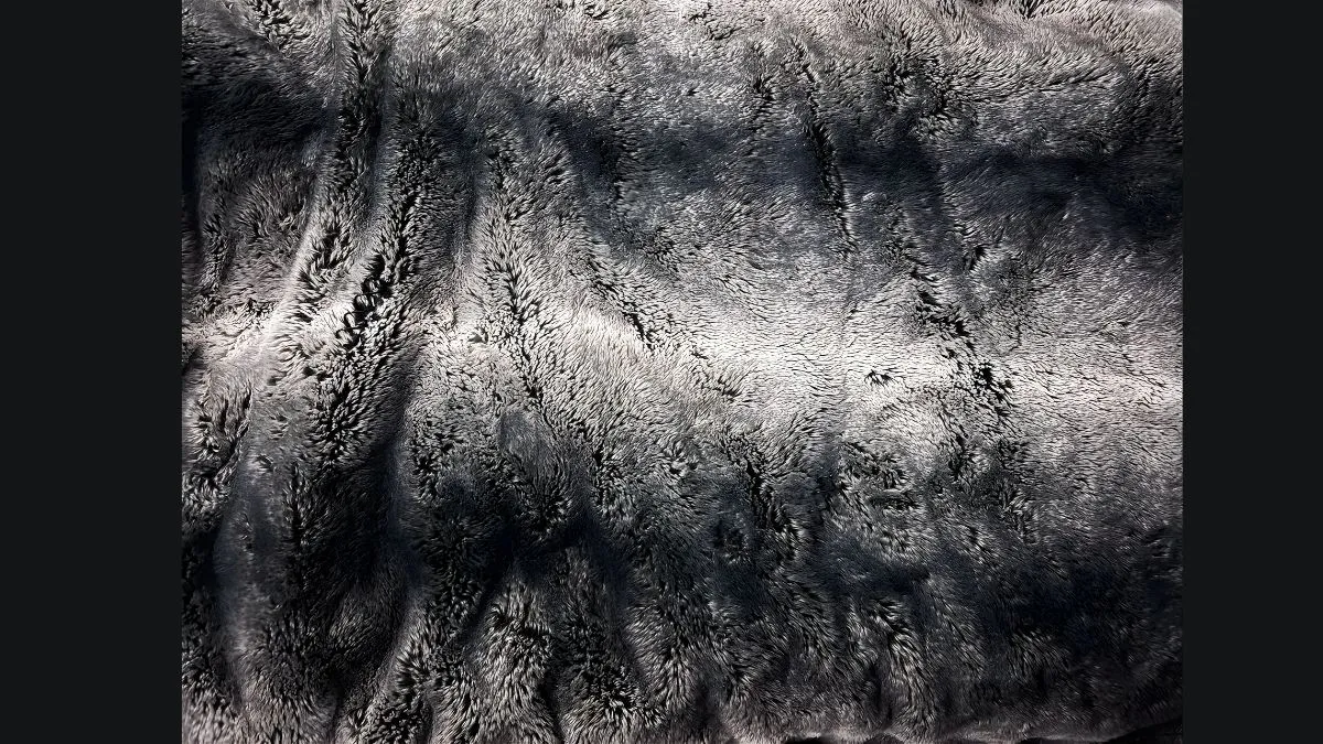 In the above image, you can all see a close-up view of a soft, gray blanket with a thick, plush texture. The blanket appears fluffy and warm, featuring natural-looking wavy patterns across its surface.