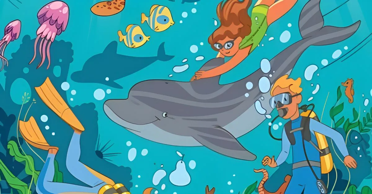When you give a look at this image, you will see a scene of people swimming under the water.