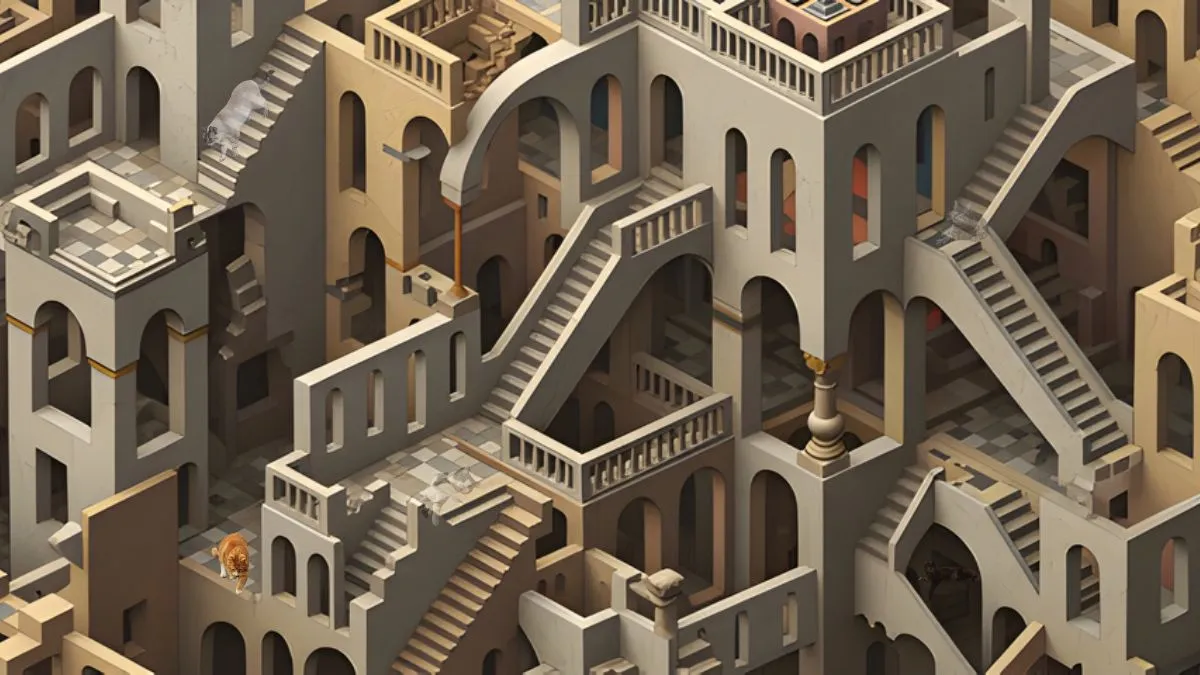 First of all, take a look at the image, and then go through it. At first glance, this Maze-Like Architectural Structure looks simple and is filled with interconnected staircases, arches, balconies, and corridors.