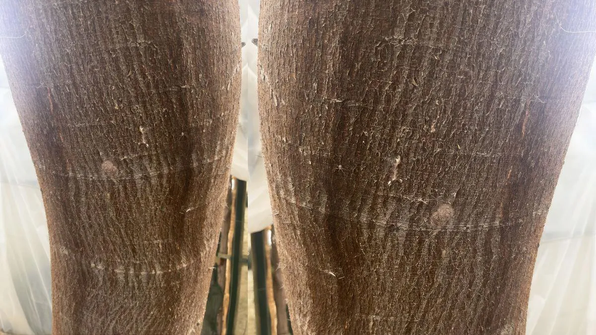 In the above image, you can all see a close-up of two wooden logs, which are placed side by side. The wooden surface is rough, dry, and textured, with visible grain patterns, cracks, and peeling bark.