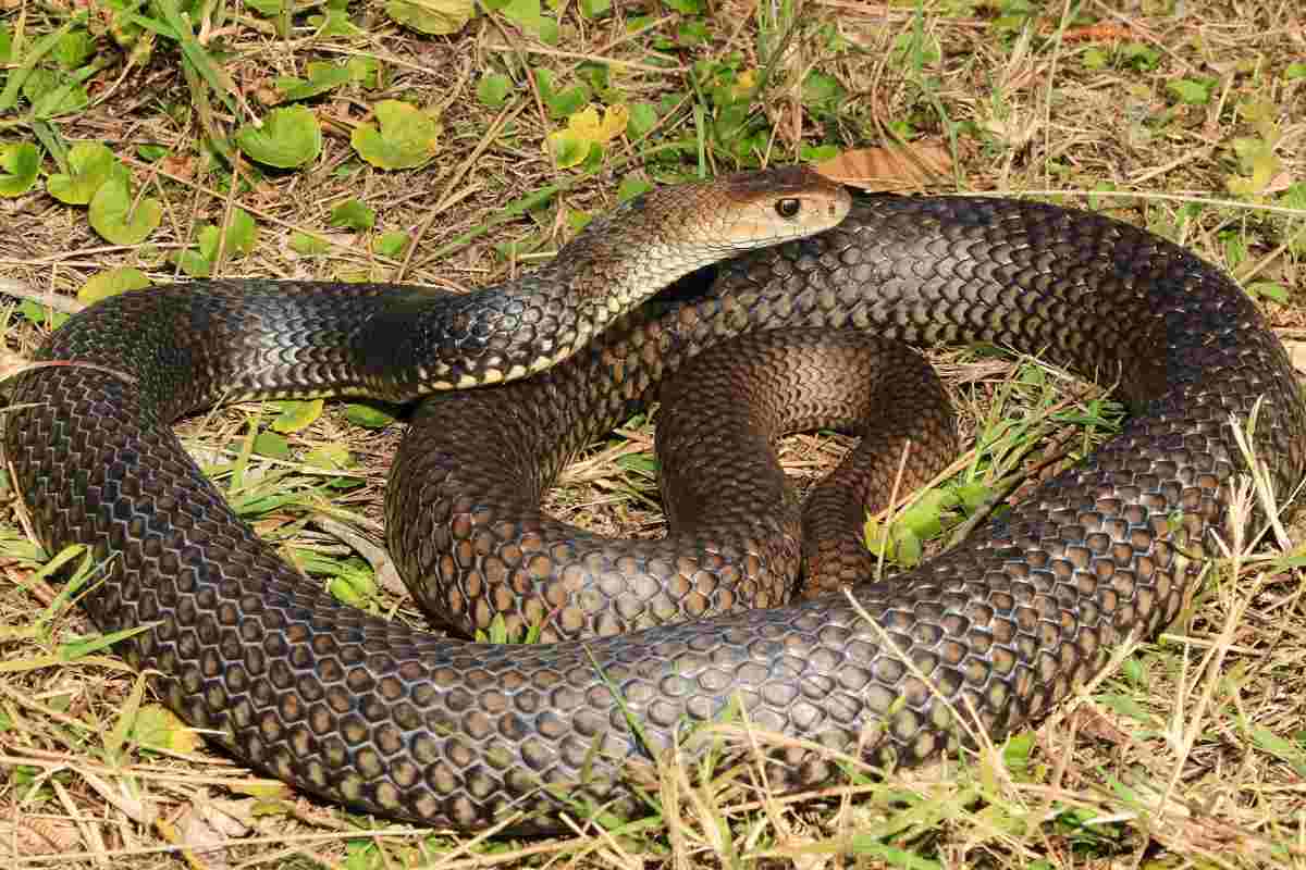 The coastal taipan is another deadly snake found in the Australian outback and is known for its incredible speed. The coastal taipan bites its victim several times before it can even react. It ranges from light olive to dark brown in colour but has reddish eyes. The coastal taipan has a long, slender body.