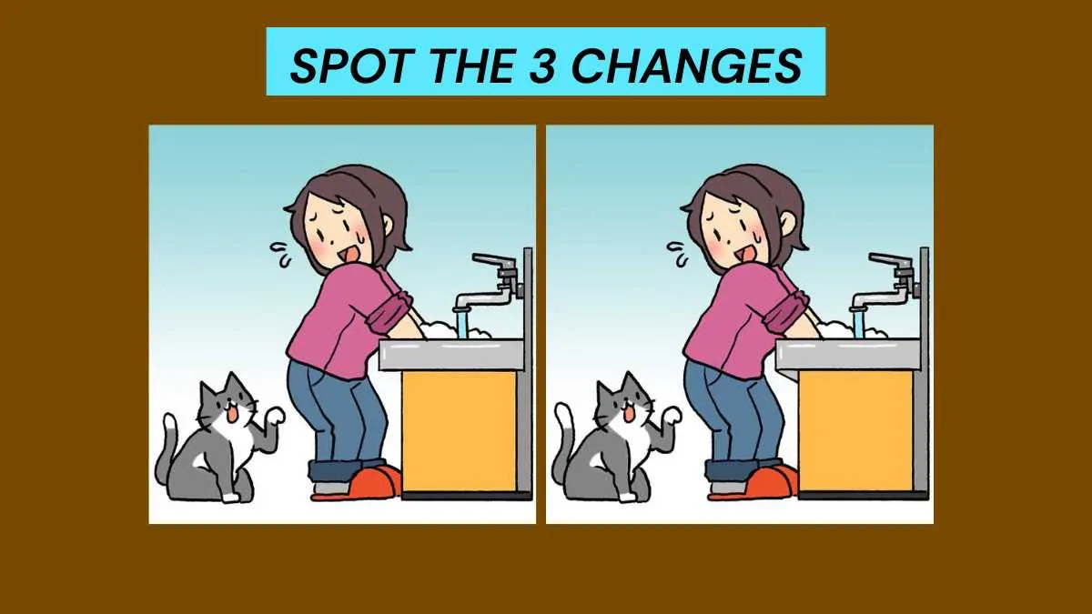Spot the Difference Puzzle: Find 3 Differences in This Woman and Cat Scene!