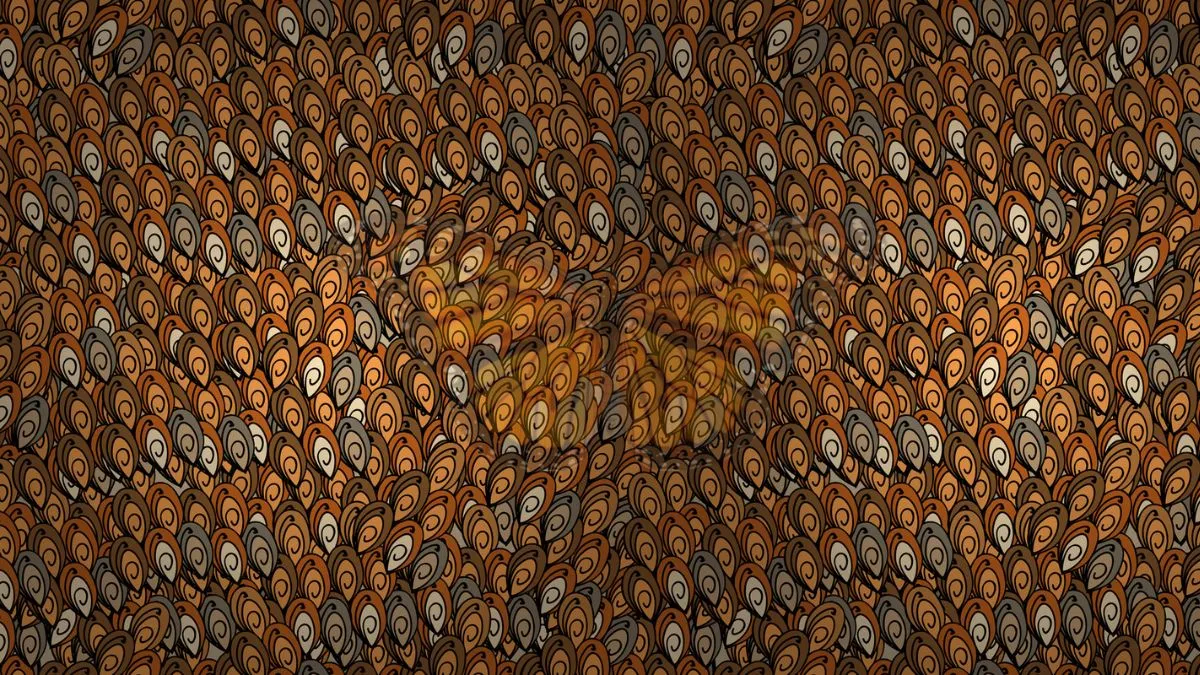 The above image is a stereogram optical illusion type, where you can all see a repeating brown and tan patterned shapes that look like small shells or curved leaves.