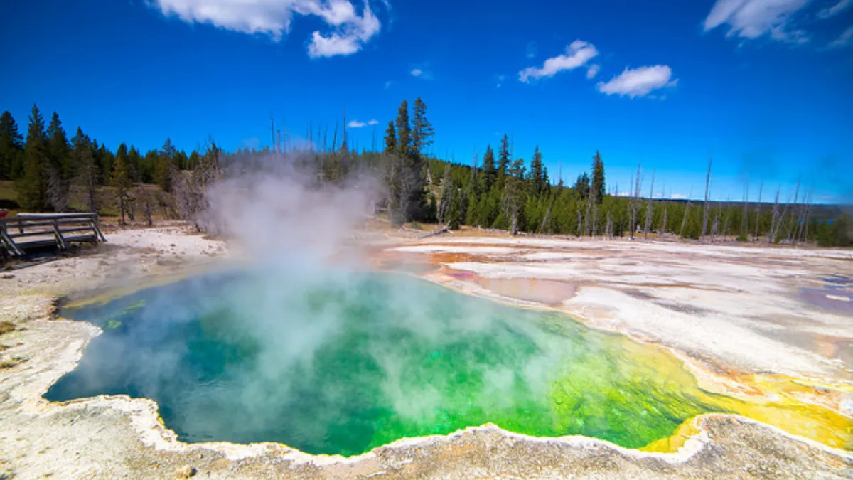 Yellowstone Volcano is a supervolcano that is active and which is found in Yellowstone National Park which is in the United States in parts of Wyoming, Montana and Idaho. It boasts a huge caldera, approximately 30 by 45 miles in size, created as a result of ancient cataclysmic eruptions and drives the famous park geysers, hot springs, and hydrothermal features.