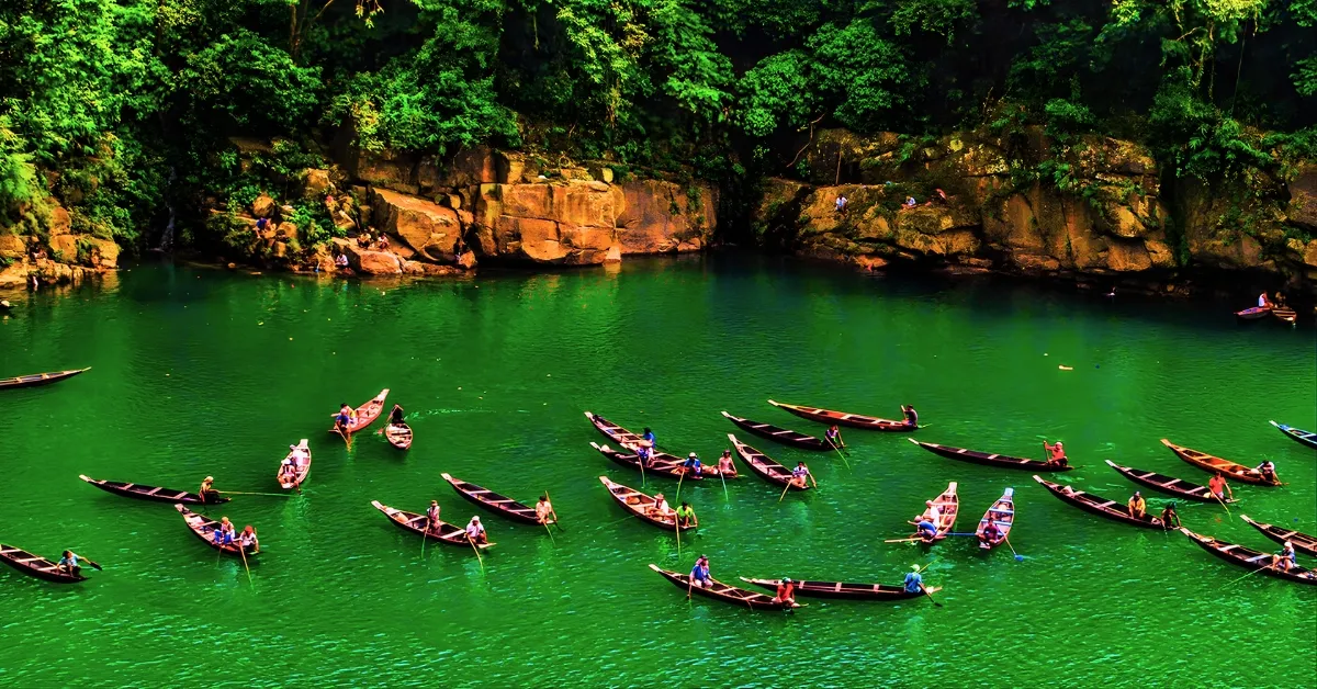 The Umngot River, also called the Dawki River, is the beautiful "Emerald River of India". It is in the state of Meghalaya and is known worldwide for its amazing clarity. At certain times of the year, the water is so clear that boats seem to float in mid-air.