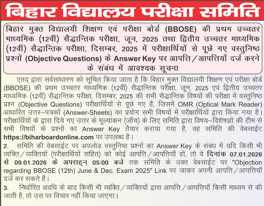 BBOSE Class 12th Exam 2026: Provisional Answer Key Objection Window Opens at bboseonline.com; Check Details, Official BSEB Tweet Here 13 days ago