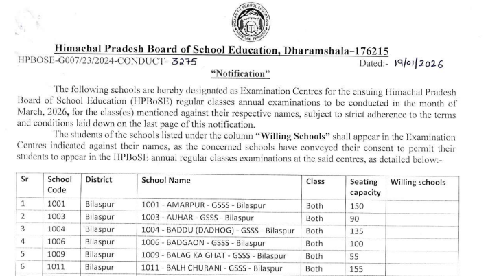 HPBOSE Exam 2026: Himachal Pradesh Board Released Class 10th, 12th Exam Centre List; Check here 4 hours ago