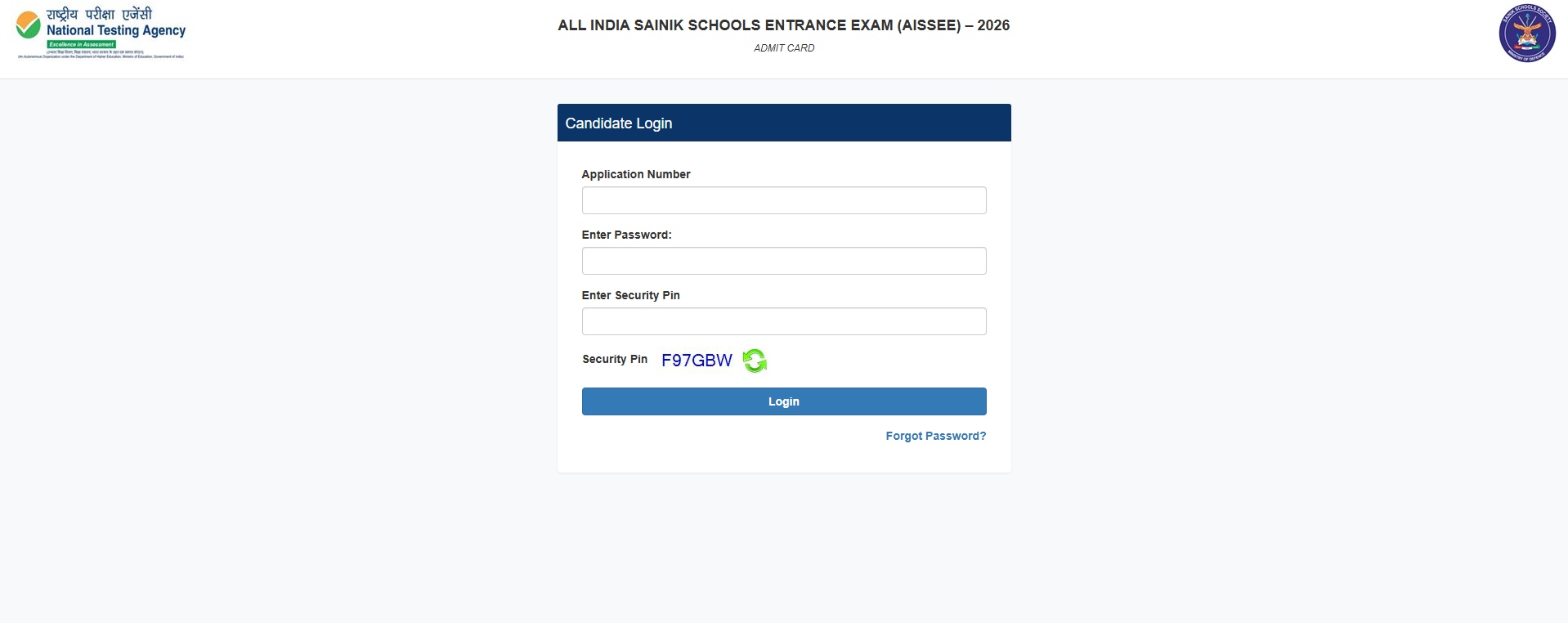 नेशनल टेस्टिंग एजेंसी (NTA) ने आज, 12 जनवरी 2026 को ऑल इंडिया सैनिक स्कूल प्रवेश परीक्षा (AISSEE) 2026 के लिए एडमिट कार्ड ऑफिशियल तौर पर जारी कर दिए हैं। अब एग्जाम के लिए रजिस्टर्ड छात्र अपना हॉल टिकट डाउनलोड करने के लिए ऑफिशियल वेबसाइट exams.nta.nic.in पर विजिट करें।