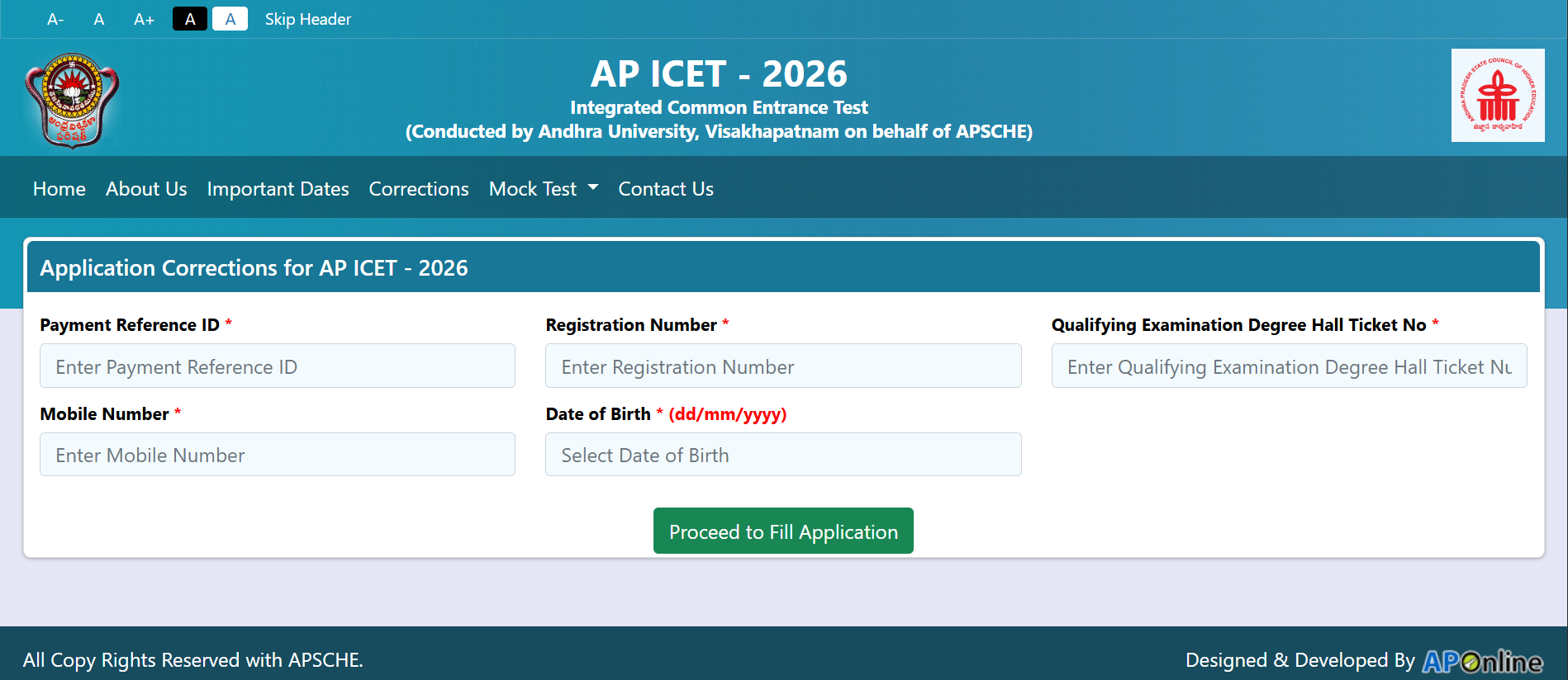 DIRECT LINK - AP ICET 2026 Application Correction Form