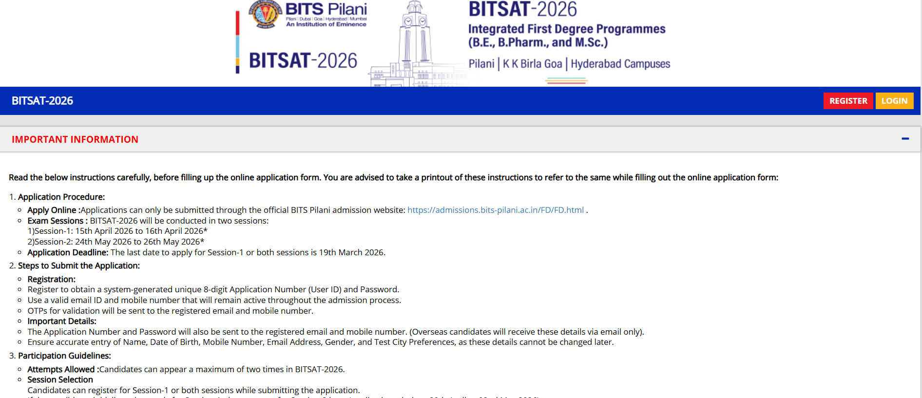 - Visit the official website at admissions.bits-pilani.ac.in