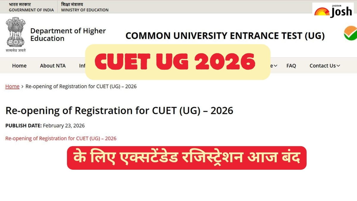 नेशनल टेस्टिंग एजेंसी (NTA) द्वारा CUET UG 2026 के लिए फिर से खोली गई रजिस्ट्रेशन विंडो आज, 26 फरवरी 2026 को बंद होने जा रही है। जिन छात्रों ने अभी तक रजिस्टर नहीं किया है, उन्हें आज लास्ट डेट से पहले ऑफिशियल वेबसाइट cuet.nta.nic.in पर जाकर जल्द से रजिस्ट्रेशन प्रक्रिया को पूरा करें। साथ ही, इसके बाद आवेदन की समय-सीमा आगे बढ़ने की कोई संभावना नहीं है।