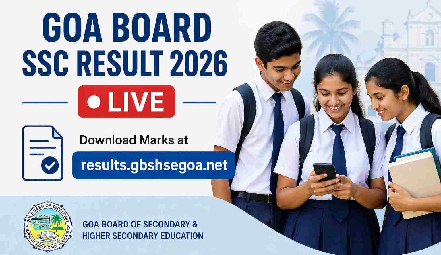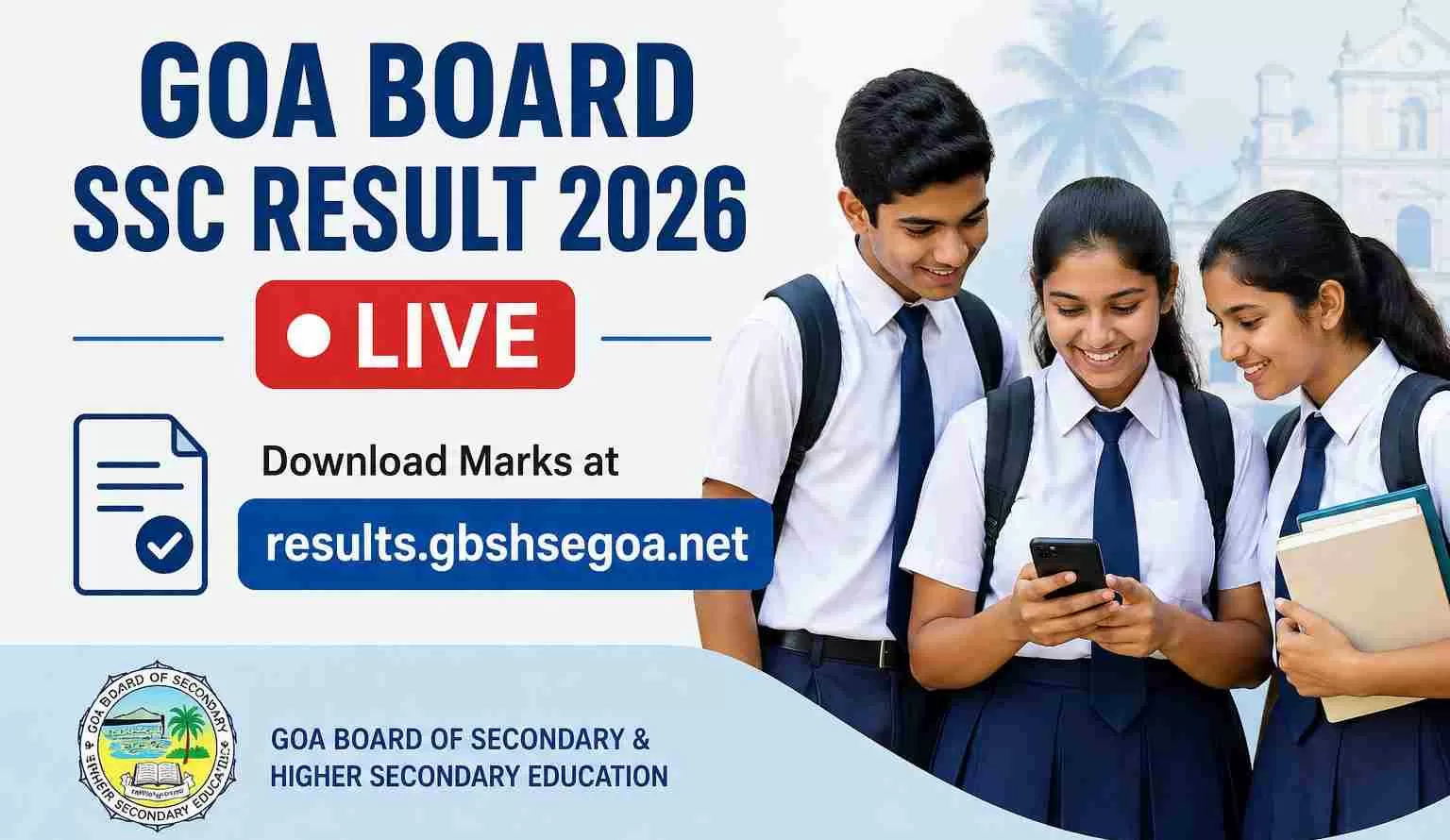 The Goa Board of Secondary and Higher Secondary Education, GBSHSE is set to announce the Goa Board SSC results for 2026 today. Students can check and download their marks online via the official website, results.gbshsegoa.net. Stay tuned for the direct result link, official time, and all the latest updates regarding the Goa Board Class 10 result declaration.