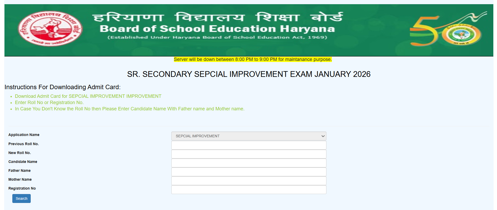 - HBSE 12th Special Improvement Exams 2026 hall ticket will appear