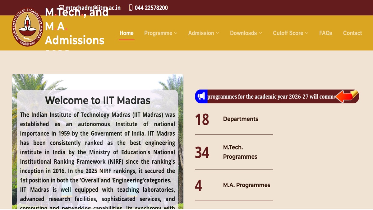 IIT Madras M.Tech and MA programme admission link will be available on the official website - mtechadm.iitm.ac.in.