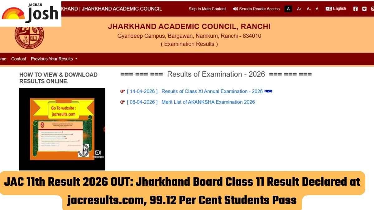 Jharkhand Academic Council, JAC, has declared the Class 11 results today, April 14, 2026. According to the official announcement by Chairman Dr Natwa Handsak, the state has recorded an impressive overall pass percentage of 99.12%. Out of the 3,58,533 students who appeared for the examination, a total of 3,55,399 students have been successfully promoted to Class 12.