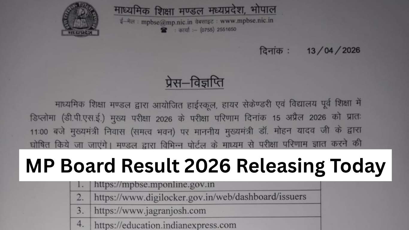 MP Board Class 10, 12 Result 2026 Releasing Today at 11 AM on mpbse.mponline.gov.in. The wait is finally over for lakhs of students in Madhya Pradesh! Students can access their scorecards online through the official website at mpbse.mponline.gov.in, or use alternatives like DigiLocker and Jagran Josh to avoid heavy web traffic.