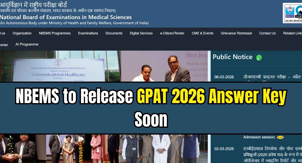 NBEMS GPAT 2026 Answer Key is expected to be released soon by the National Board of Examinations in Medical Sciences NBEMS on its official website natboard.edu.in. The GPAT 2026 exam was conducted successfully on March 7, 2026 for candidates seeking admission to postgraduate pharmacy programmes.