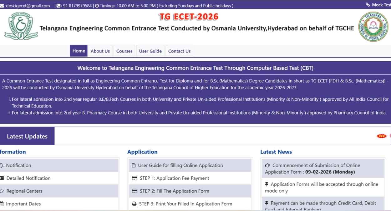 Osmania University has extended the registration deadline for the Telangana State Engineering Common Entrance Test 2026, giving candidates additional time to complete their applications. Interested applicants can now apply through the official website, ecet.tgche.ac.in, till April 23, 2026 without any late fee.