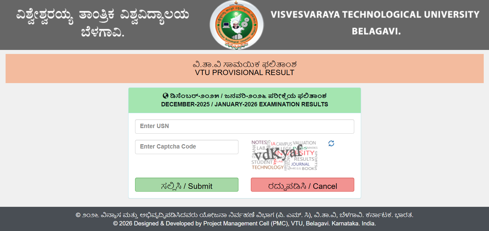 - Enter your USN Code and captcha to submit